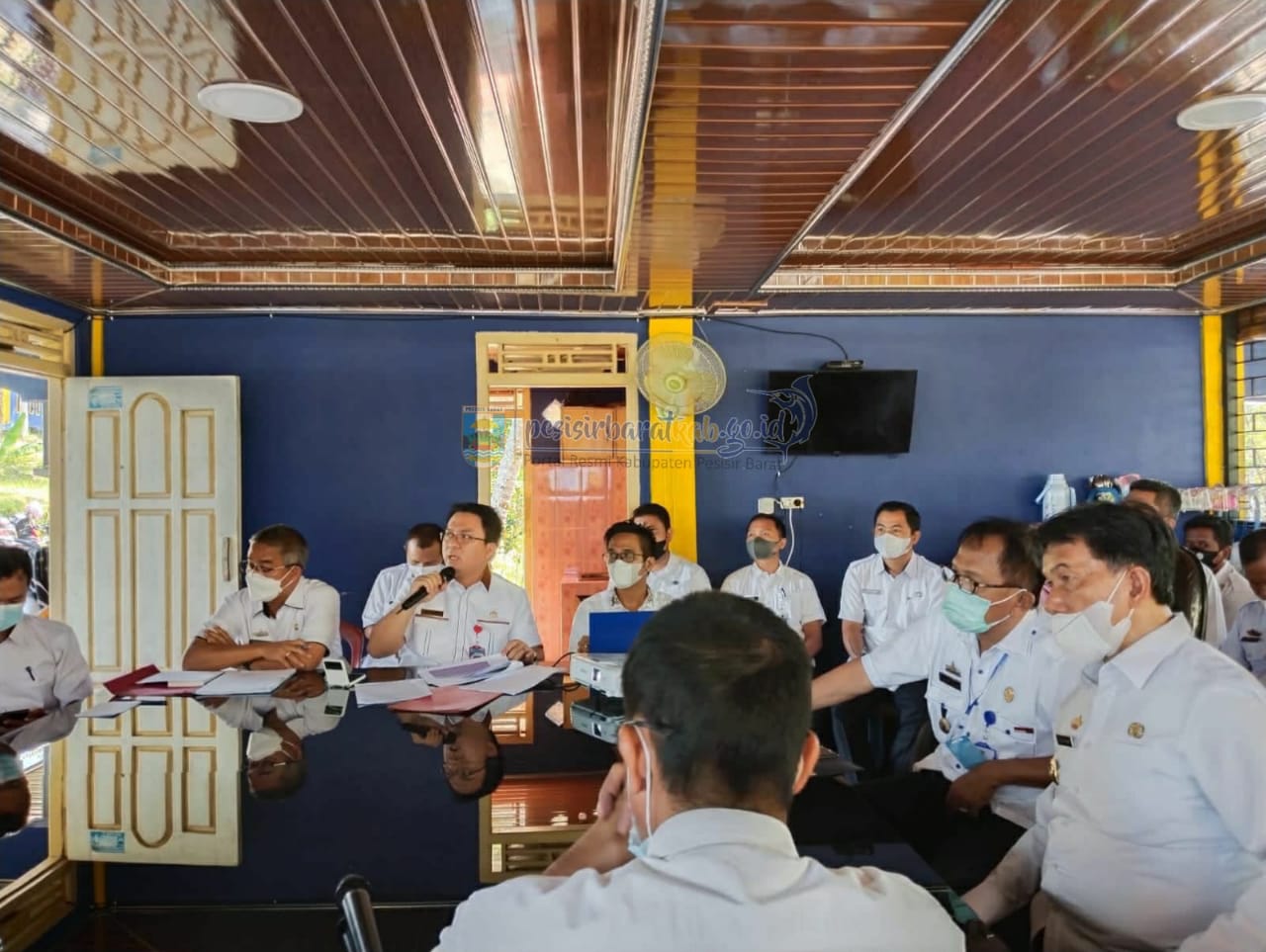 PESISIR BARAT-Bupati Pesisir Barat (Pesibar), Agus Istiqlal didampingi Wakil Bupati (Wabup) A Zulqoini Syarif mengikuti rapat evaluasi Rencana Aksi Program Pencegahan Pemberantasan Korupsi Integritas (RAP3KI) tahun 2022, di Villa Repong Ramdo Way Batu Kecamatan Pesisir Tengah, Rabu (13/04/2022).