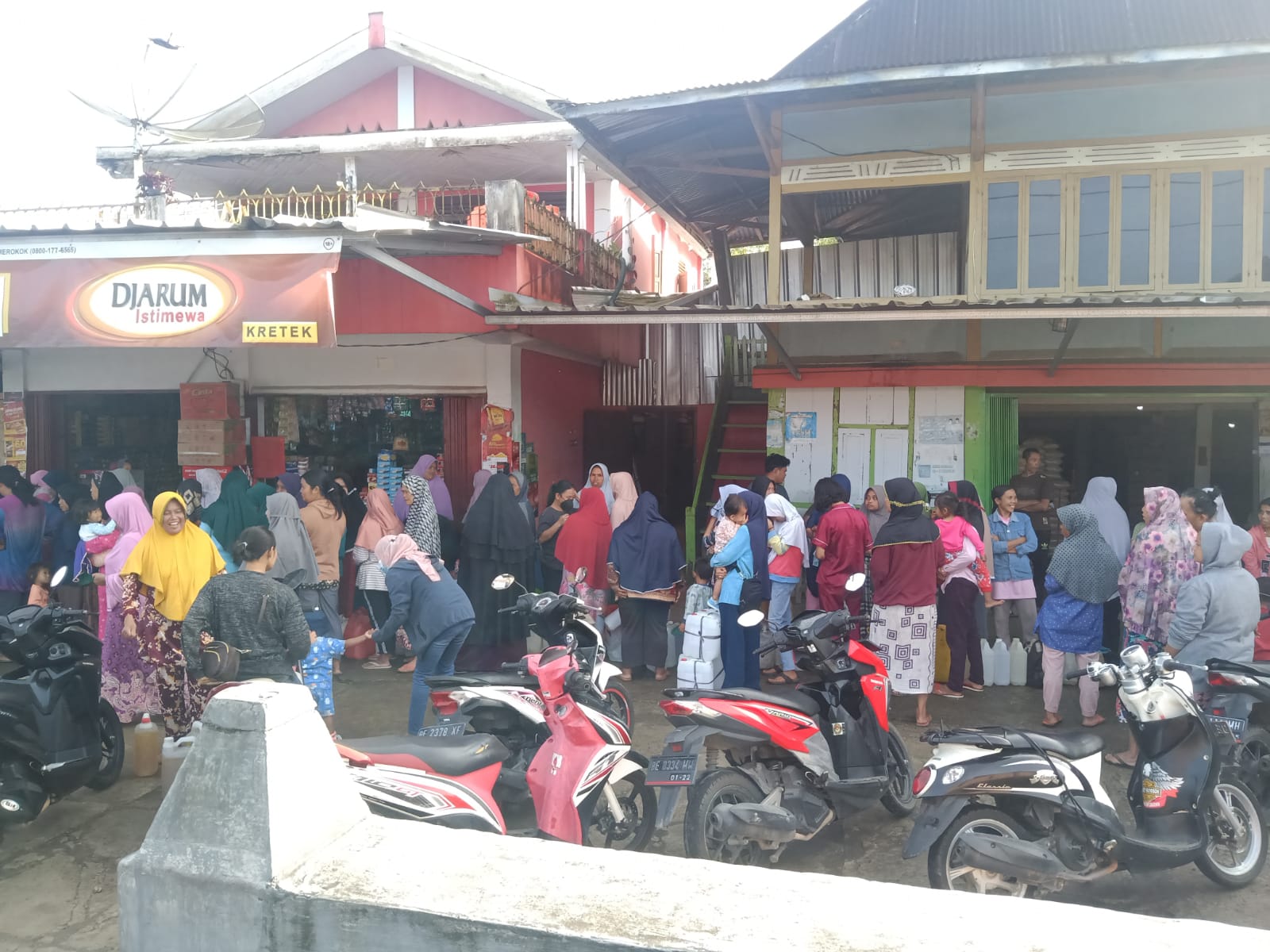 Seperti halnya di Toko Harahap yang terletak di Jalan Lintas Liwa, Pekon Kota Besi, Kecamatan Batu Brak, ratusan warga sudah mengantre untuk membeli minyak goreng curah yang baru saja tiba dari distributor.
