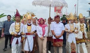 PESISIR BARAT-Wakil Bupati (Wabup) Pesisir Barat, A Zulqoini menghadiri pembukaan Tentara Manunggal Membangun Desa (TMMD) ke-113 di Pekon Suka Maju Kecamatan Ngaras, Rabu (11/05/2022).