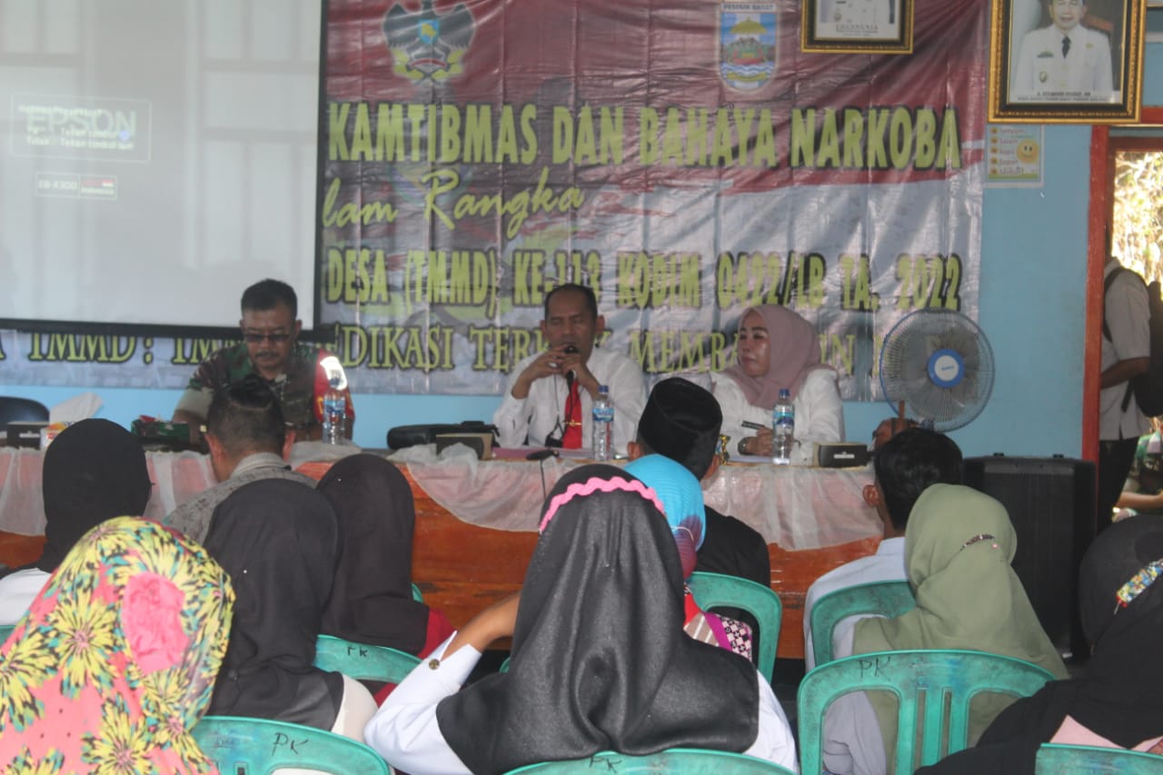 PESISIR BARAT-Guna menanggulangi bahaya penyalahgunaan narkotika, Satgas TMMD ke-113 Kodim 0422/LB, melakukan penyuluhan bahaya pemakaian narkotika kepada generasi muda, di Balai Pekon Suka Maju, Kecamatan Ngaras Kabupaten Pesisir Barat (Pesibar), Rabu (18/05/2022).