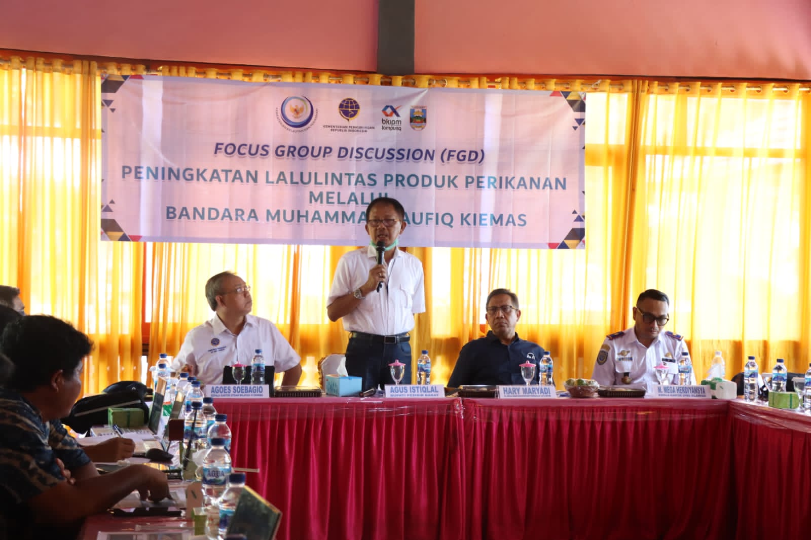 PESISIR BARAT-Bupati Pesisir Barat (Pesibar), Agus Istiqlal membuka Focus Group Discussion (FGD), Peningkatan Lalulintas Produk Perikanan (LPP) melalui Bandara Muhamad Taufiq Kiemas (MTK).