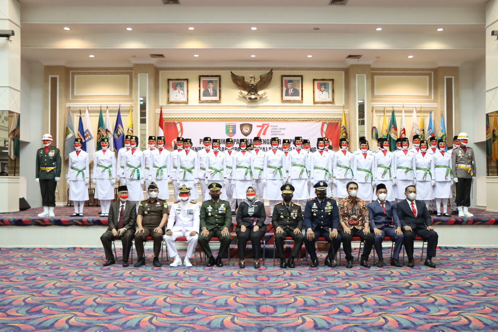 Pengukuhan Paskibraka Provinsi Lampung Tahun 2022 dihadiri oleh Inspektur Provinsi Lampung, Staf Ahli, Asisten, Kepala Badan, Kepala Dinas, Kepala Biro.