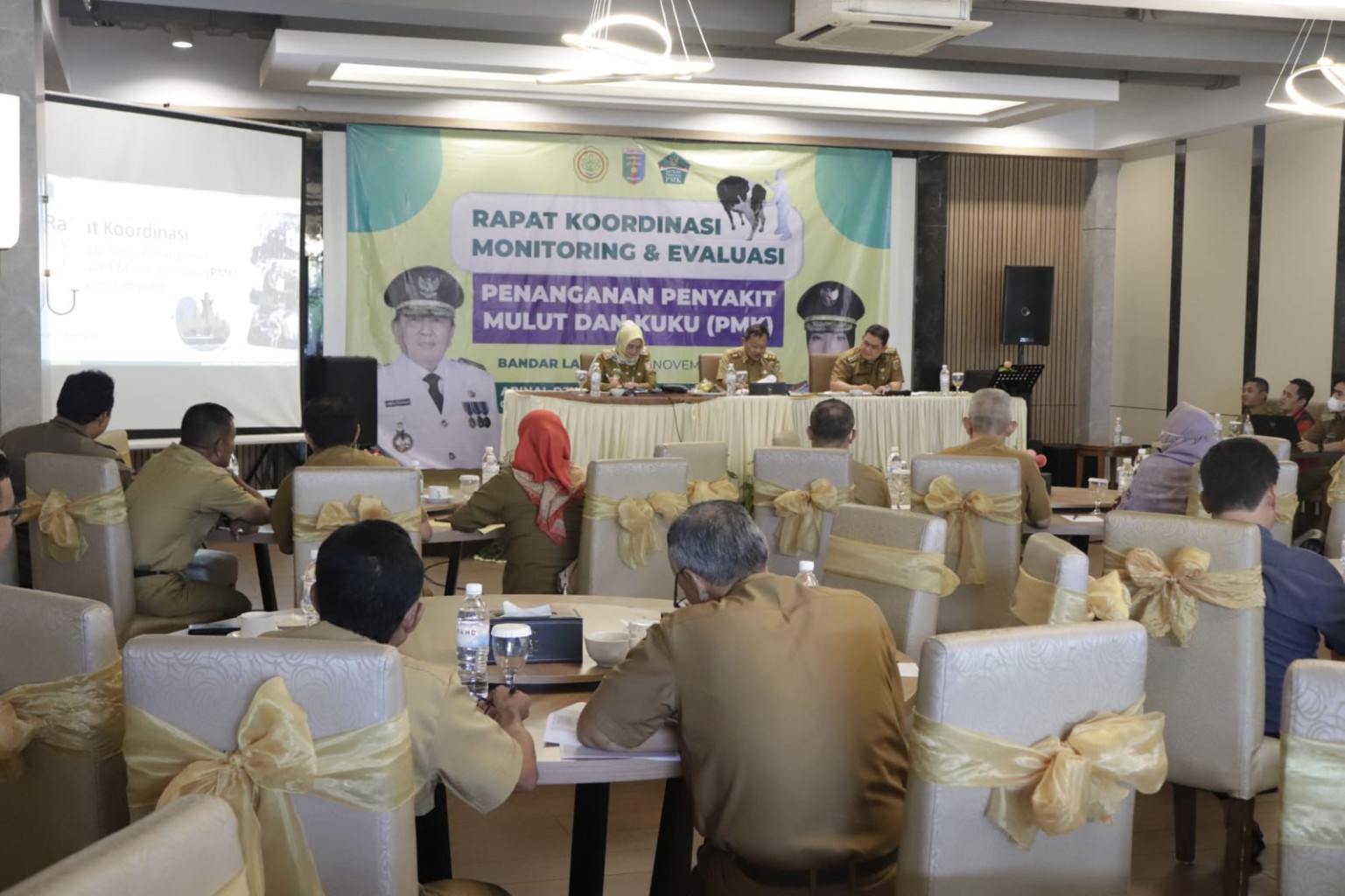 BANDAR LAMPUNG – Asisten Perekonomian dan Pembangunan, Kusnardi, memimpin Rapat Koordinasi (Rakor) Satuan Tugas Penanganan Penyakit Mulut dan Kuku (PMK), bertempat di Hotel Bukit Randu Bandar Lampung, Selasa (15/11/2022).