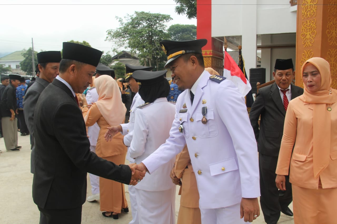 LAMPUNG BARAT – Menjelang purna bhakti, Bupati Lampung Barat (Lambar) Parosil Mabsus merolling 77 pejabat yang terdiri dari eselon II, III, dan IV yang dilaksanakan di pelataran Lamban Pancasila, Senin (28/11/2022).
