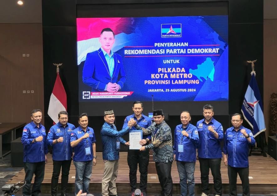 Pasangan itu mengantongi Surat Keputusan DPP Partai Demokrat nomor 470 /SK-PILKADA/DPP.PD/VIII /2024 tentang persetujuan pasangan calon Walikota dan Wakil Walikota Kota Metro Provinsi Lampung.