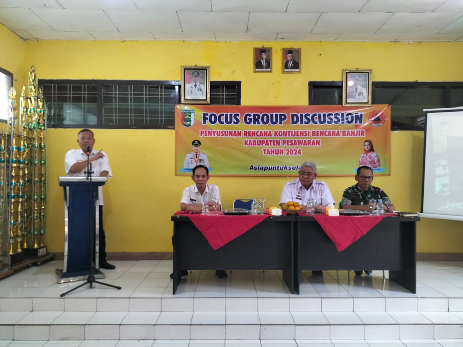 PESAWARAN — Untuk mengantisipasi dan meningkatkan kesiapsiagaan mitigasi bencana, Pemerintah Kabupaten Pesawaran mengadakan Focus Group Discussion (FGD) yang bertujuan untuk menyusun Dokumen Rencana Kontingensi Bencana Banjir Tahun 2024 di Aula Kantor Kecamatan Gedong Tataan pada Rabu (28/08/2024).