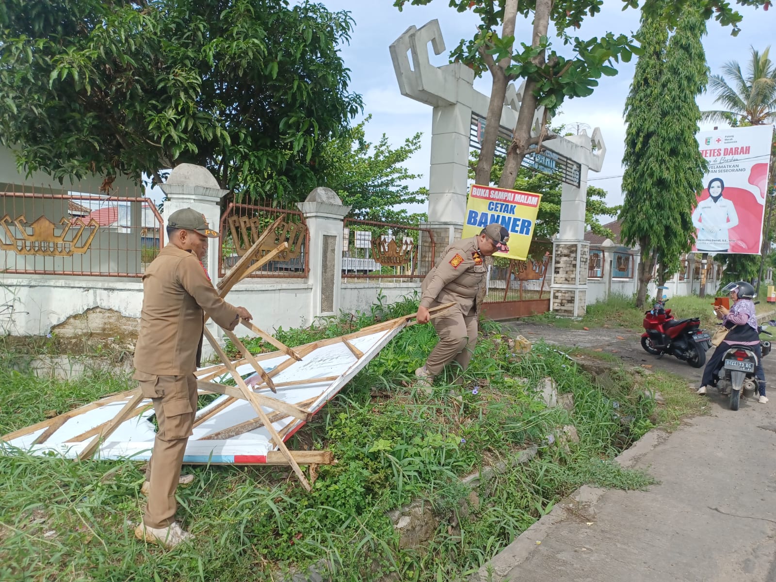 Satpol PP bersama Bawaslu Pesawaran gerak cepat menertibkan Alat Peraga Kampanye (APK) di sepanjang Jalan Protokol, pada Minggu (24/11/2024). pagi.