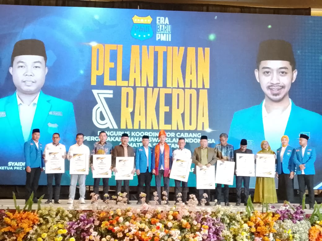 PALEMBANG –  Pengurus Koordinator Cabang Pergerakan Mahasiswa Islam Indonesia (PKC PMII) Sumatera Selatan Periode 2025–2027 resmi dilantik di Ballroom Hotel The Zuri Palembang, Sabtu (17/1/2026).