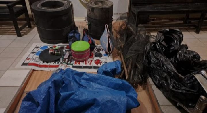 Satu plastik klip berukuran 2,5×3 Senti meter bekas sisa pakai, jarum suntik yang sudah di modifikasi, dua sedotan berbentuk skop, satu kaca pirek, seperangkat alat hisap sabu atau bong, dua korek api gas tanpa kepala.