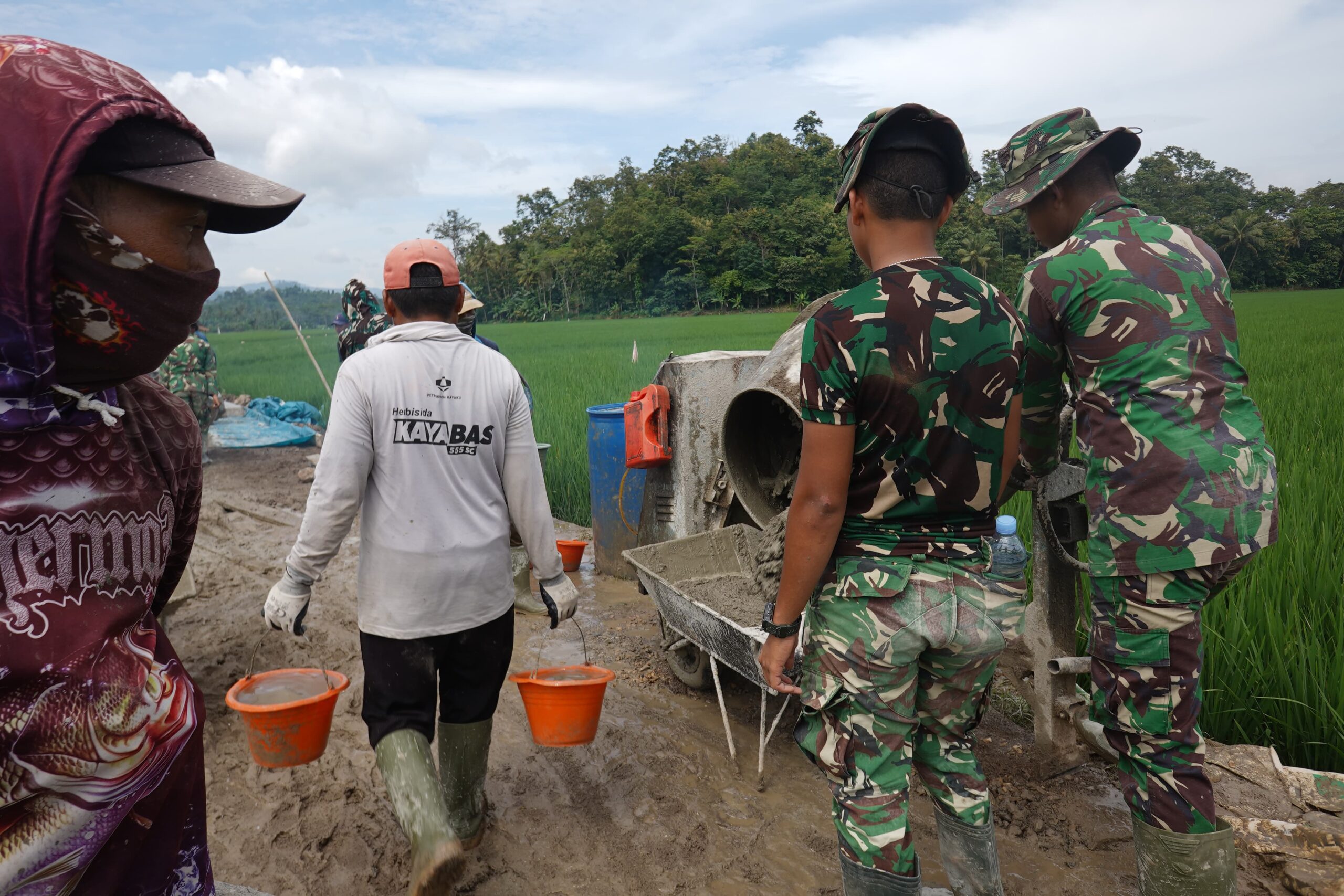 Warga dukung banget, harapannya akses transportasi lancar, ekonomi naik, dan hidup lebih baik. Satgas juga manfaatkan angkong dan ember atasi cuaca, kerja tetap jalan!